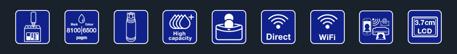 Кольоровий РК-дисплей 3,7 см,_x000D_ Задній лоток для паперу на 100 аркушів, фотодрук_x000D_ без полів (формат до 10х15 см) і швидкість друку до_x000D_ 10 сторінок на хвилину* дозволяють легко виконувати різноманітні завдання.