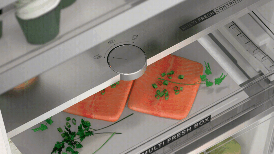 3 спеціальні налаштування температури для довшого збереження продуктів свіжими • риба та м’ясо (+/-1°C), • фрукти та овочі (+/-3°C) • молочні продукти (+/-2°C).