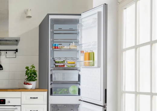 Просторий салон об'ємом до 311 літрів і продумане обладнання дозволять легко знайти підходяще і легкодоступне місце для кожного товару. Скляні полиці, дверні балкони і 2 прозорих ящика для овочів і фруктів - включаючи камеру свіжості з регульованою температурою - дозволяють зручно і швидко організувати простір. Крім того, холодильник MPM-311-FF-57 оснащений надзвичайно практичною металевою полицею для пляшок - таке рішення забезпечує легкий доступ до охолоджених напоїв і забезпечує їх зручне і стабільне зберігання. У морозильній камері також є 3 просторих відділення, щоб ви могли легко заморозити продукти для всієї родини.
