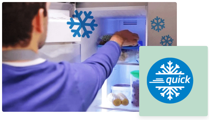Заморожування щойно доданих продуктів здоровішим способом і без впливу на температуру продуктів, які раніше зберігалися.