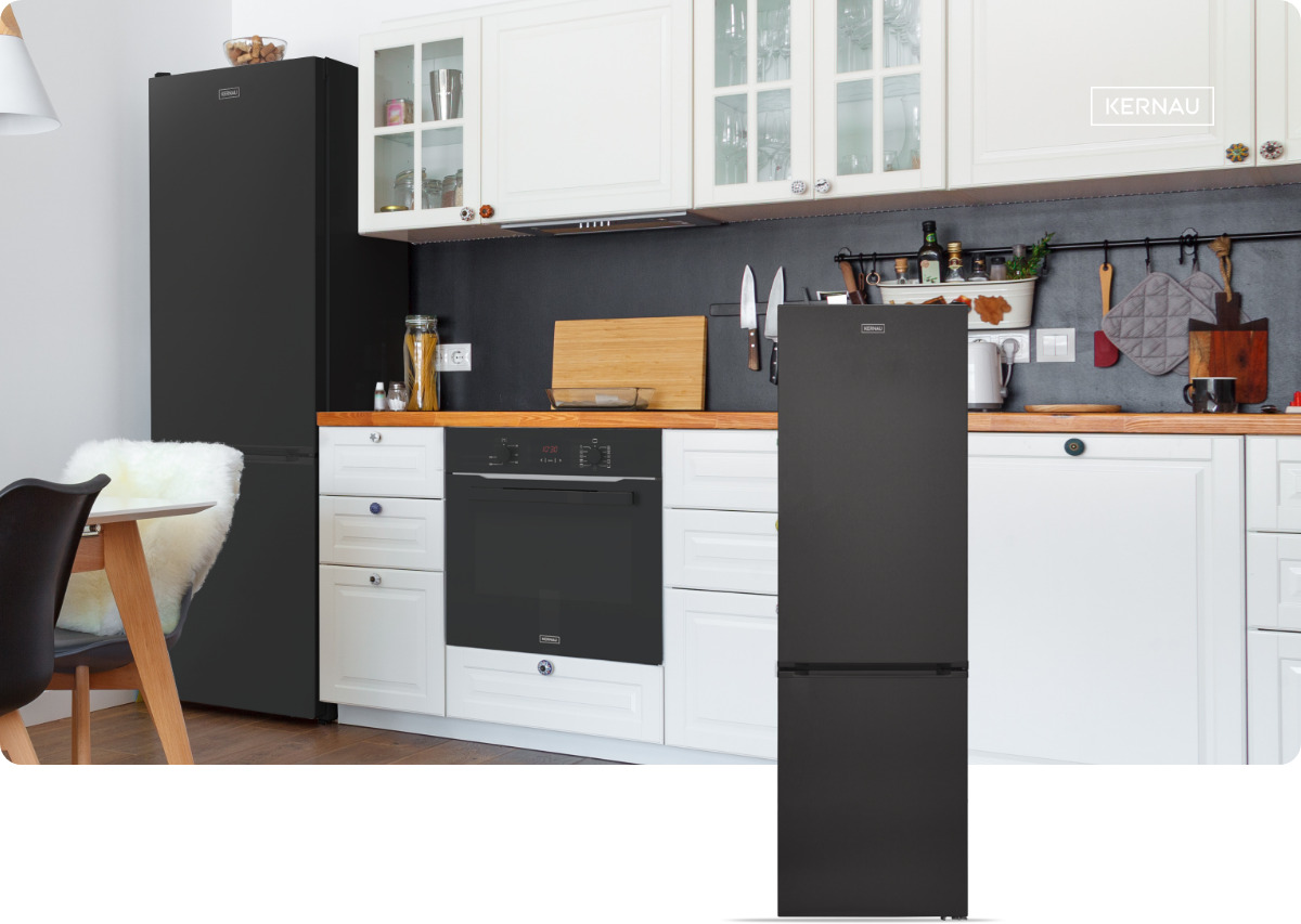 Окремо стоячий холодильник-морозильник Kernau висотою 2 м забезпечує ще більше місця для зберігання. У вашому розпорядженні салон об’ємом до 367 літрів. Більша місткість і чітке розташування полиць_x000D_ це також означає кращий контроль і менше витрачання їжі.