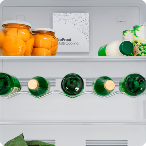 Система охолодження NoFrost Multi Cooling — це незалежна циркуляція повітря для морозильника та холодильника. Це запобігає проникненню запахів із холодильної камери в морозильну камеру. Причому він підтримується в обох камерах_x000D_ оптимальний рівень вологості для кожного, і обидва будуть вільні від морозу.