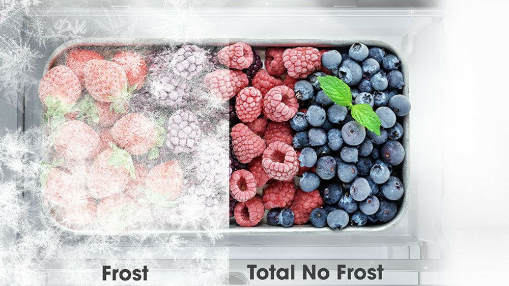 Інноваційна технологія Total No Frost рівномірно розподіляє холодне повітря по холодильнику та морозильній камері, запобігаючи утворенню кристалів льоду. Забезпечує належні умови зберігання, завдяки чому їжа довше залишається свіжою та здоровою. Вам не потрібно витрачати час і сили на розморожування пристрою.