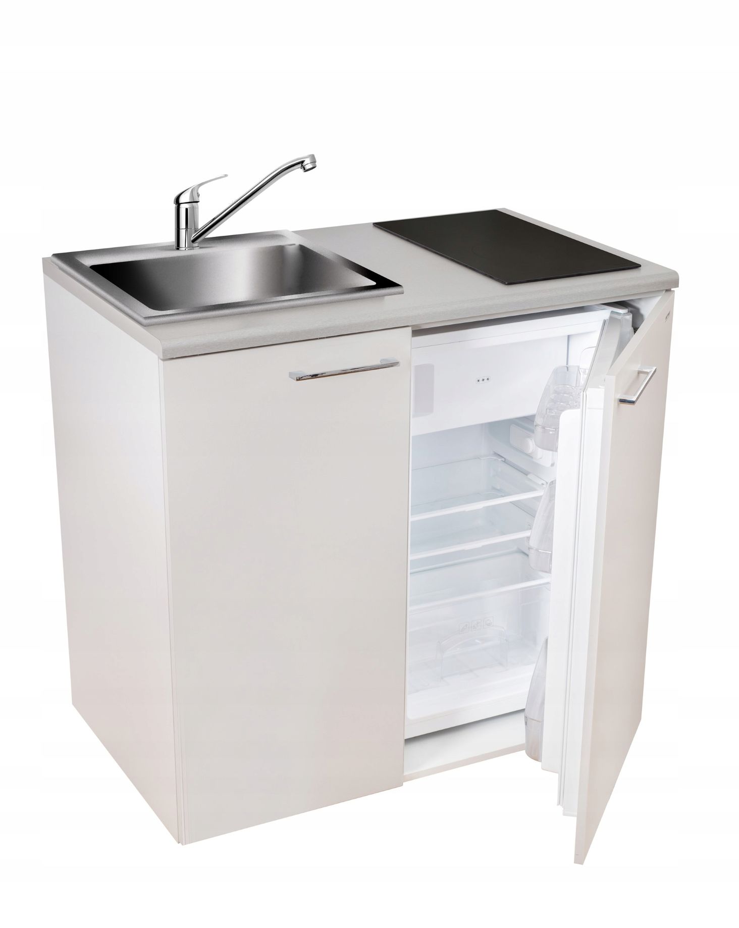 МПМ-СМК-03 - це набір, що складається з шафи, холодильника, мийки, 2-полюсної індукційної електроплитки та акумулятора. Виріб складається з холодильником тільки з правого боку.В комплект входить: 1. Корпус шафи з білого меблевого щита, розміри 94х100х60 см (ШхШхГ)_x000D_ 2. Мийка KUCHINOX MIKA 3. Індукційна електроплита MPM-30-IM-12 на 2 конфорки:_x000D_ _x000D_ 6,2 x 29 x 52 (ВxШxГ см)4. Змішувач Pyramis Asalia chrome5. Холодильник MPM-81-CJH-23