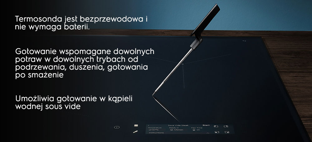 Зустрічайте свого нового шеф-кухаря – варильну панель SensePro®. Бездротовий термометр вимірює температуру всередині, підключаючись до варильної поверхні. Таким чином ви можете варити, смажити, тушкувати та готувати су-віде з результатами, гідними найкращих ресторанів.