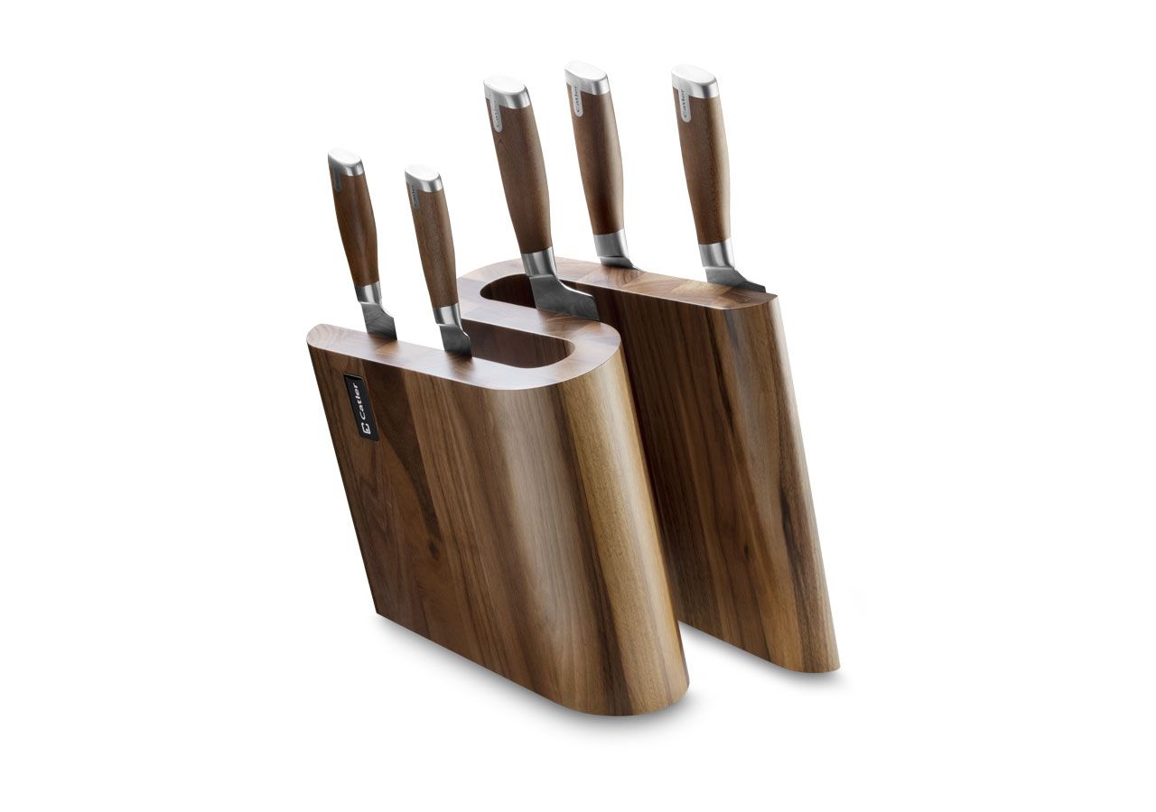 Унікальний візерунок високоякісного справжнього горіхового дерева та дизайн студії італійських стилістів роблять цю магнітну підставку для ножів витвором мистецтва.