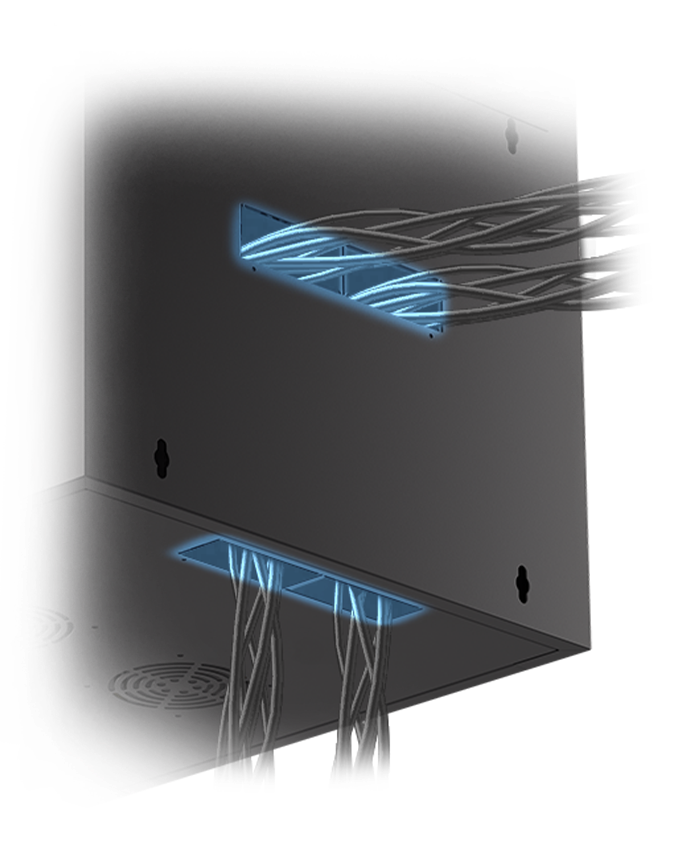 Використання 2 вентиляційних отворів у панелях підлоги та стелі забезпечує кращий потік повітря та охолодження, а користувач отримує ще більший контроль над циркуляцією температури в шафі.