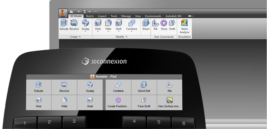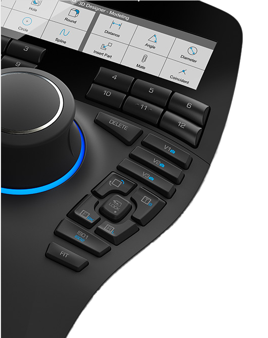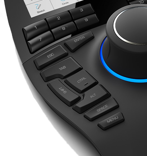 Інтелектуальні функціональні клавіші дають вам швидкий доступ до щонайменше дванадцяти ваших улюблених команд. Тож у вас завжди є потрібні інструменти для швидкої та ефективної роботи. Ви отримуєте ідеальний огляд завдяки новому кольоровому дисплею високої роздільної здатності, на якому також можна відображати піктограми програм. Програмне забезпечення 3DxWare 10 дає змогу легко призначати команди програми окремим кнопкам відповідно до ваших потреб, завдяки чому це стає дуже інтуїтивно зрозумілим.