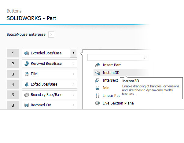 Налаштуйте функції миші SpaceMouse Enterprise 3D і максимально оптимізуйте її продуктивність за допомогою інтерактивного програмного забезпечення 3DxWare 10. Ви можете легко призначати окремі команди кнопкам для кожної програми чи середовища, як-от режим проектування, режим компонентів і режим звіту . Крім того, ви можете налаштувати інші корисні параметри точно відповідно до своїх потреб.