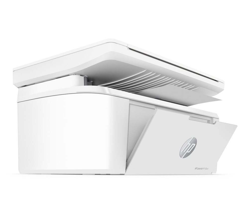 HP LaserJet M140w має висувний вхідний лоток на 150 аркушів. Ємність вихідного лотка дозволяє вмістити до 100 аркушів паперу.