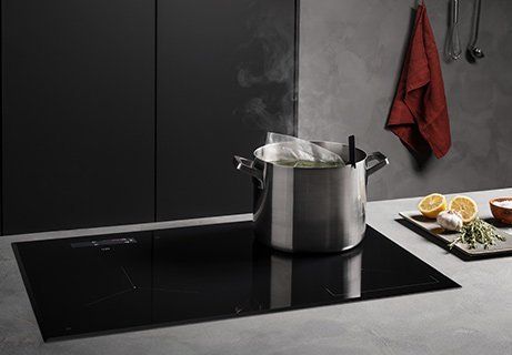 Прохолодніше, більше безпечна кухня. Наша інтелектуальна індукційна технологія нагріває ваш посуд і їжу в ньому, але нічого більше. Поверхня навколо посуду залишається холодною. Крім того, конфорка починає нагріватися лише тоді, коли на неї ставиться посуд. Якщо каструлі немає, тепло не виділяється і немає ризику отримати опіки.