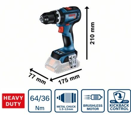 Інструмент призначений для свердління отворів максимальним діаметром 68 мм у дереві та 13 мм у сталі та кам’яній кладці. Модель GSB 18V-90 C Professional сумісна з усіма акумуляторами та зарядними пристроями Bosch Professional 18 В (професійна система 18 В).