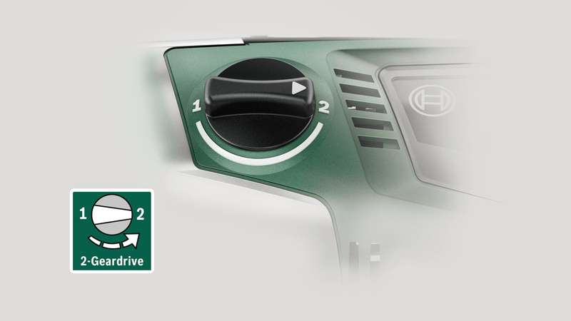 2-швидкісна коробка передач забезпечує правильне налаштування потужності для кожного завдання. Високий крутний момент на першій передачі дозволяє загвинчувати або