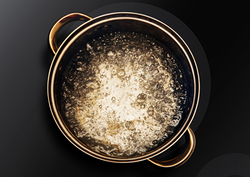 Миттєвий окріп? Використовуйте максимальну потужність зони нагріву і кип'ятіть воду для макаронів за кілька хвилин. Після закипання конфорка автоматично перемикається на меншу потужність – достатню для підтримки кипіння. Функція має обмежений час роботи, але потужності нагріву, яку вона генерує, достатньо, щоб швидко закип’ятити воду навіть у великій каструлі.