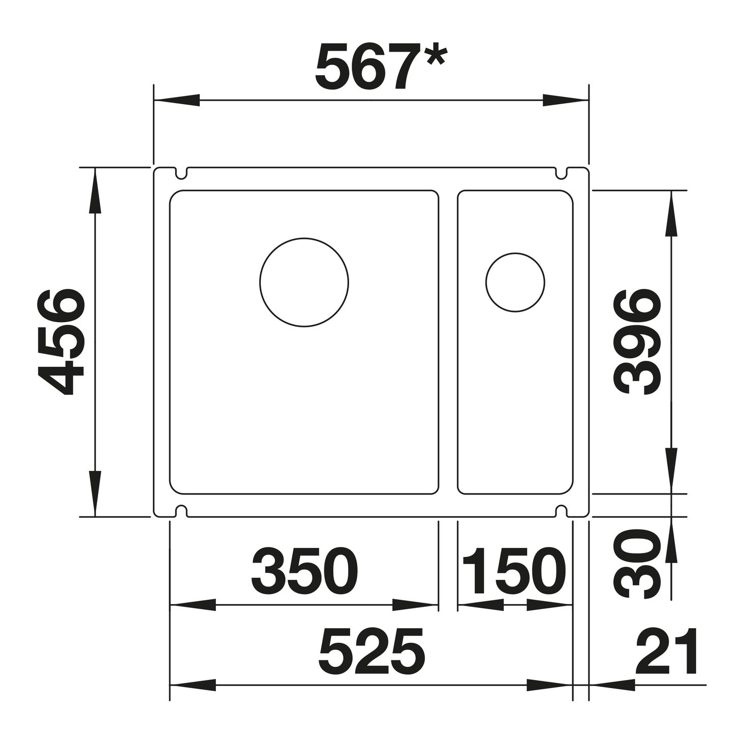 Кухонна мийка Blanco SUBLINE 350/150-U 523746В наявності