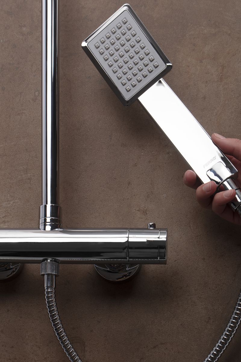 Сучасна душова кабіна, крім зручності ванни, повинна прикрашати інтер'єр ванної кімнати. Тому Ferro пропонує функціональні душові набори, оснащені термостатичними змішувачами, водозберігаючими елементами, а також приховані набори зі змішувачем і тропічним душем. Гарнітури з елегантними душовими лійками і душовими ручками геометричної або круглої форми, покриті блискучим хромованим покриттям, відмінно виглядають в сучасних душових кабінах.