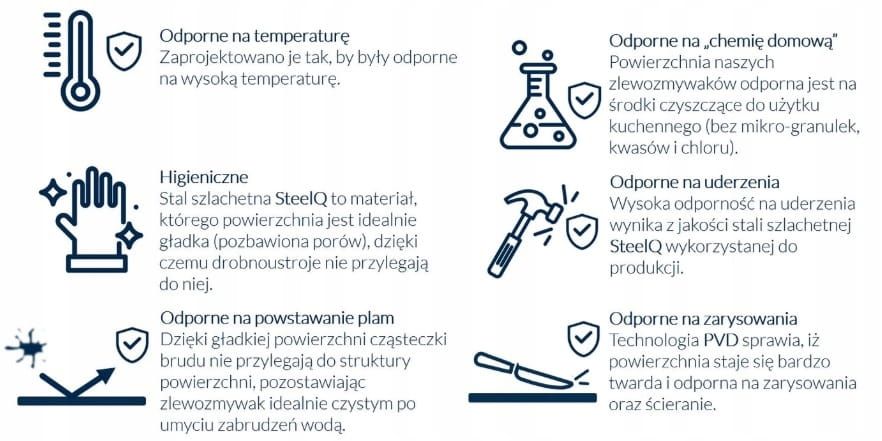 У набір входить мийка з чорного металу LUKE 90 SteelQ PVD + сифон для економії місця з чорним зливом 3,5". Опис: Сучасний дизайн - адаптований до сучасних тенденцій. Мийка виготовлена з нержавіючої сталі SteelQ за технологією PVD, що гарантує Висока гігієнічність і довговічність. Матеріал, з якого виготовлена мийка, забезпечує стійкість до великих температурних перепадів і механічних пошкоджень , а глибока і містка чаша - це особливість, яка забезпечить великий комфорт використання. Мийка оснащена зливом з нержавіючої сталі в PVD-кольорі, що надає виробу елегантний вигляд сифон можна підключити до посудомийної або пральної машини, а система економії місця дозволяє заощадити місце в тумбі під раковиною: Мінімальна рама: від 40 см.Матеріал: нержавіюча сталь SteelQ за технологією PVD.Колір: чорний метал. спосіб: Врізна в стільницю Розміри раковини: 400 мм x 450 мм Розміри чаші: 350 мм x 350 мм x 200 мм Розміри вирізів у стільниці: 380 мм x 430 мм Злив: пробка 3,5", в колір раковини Сифон: з можливістю підключення посудомийної або пральної машини Тип сифона: настінний Save Space (сифон зі спеціальною плоскою конструкцією - використана технологія дозволяє економити місце в тумбі під мийкою і займає менше місця, ніж стандартний сифон) 35 мм вирізані монтажні отвори: ТАК ГАРАНТІЯ: 10 РОКІВ Файли для завантаження: Szablon_LUKE_90