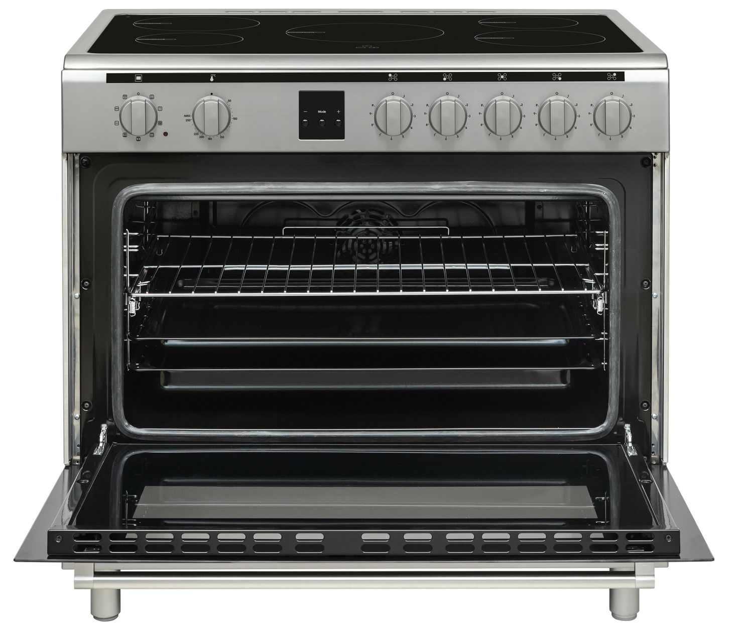 Особливості: • Тип духовки: Електрична_x000D_ • Тип нагрівальної плити: Індукційна_x000D_ • Колір фасаду духової шафи: Inox-чорний_x000D_ • Ширина [см]: 90_x000D_ • Функції: Конвекція, Гриль (тостер)_x000D_ • Широка індукційна плита з 5 конфорками_x000D_ • Виймайте лоток безпечно та легко