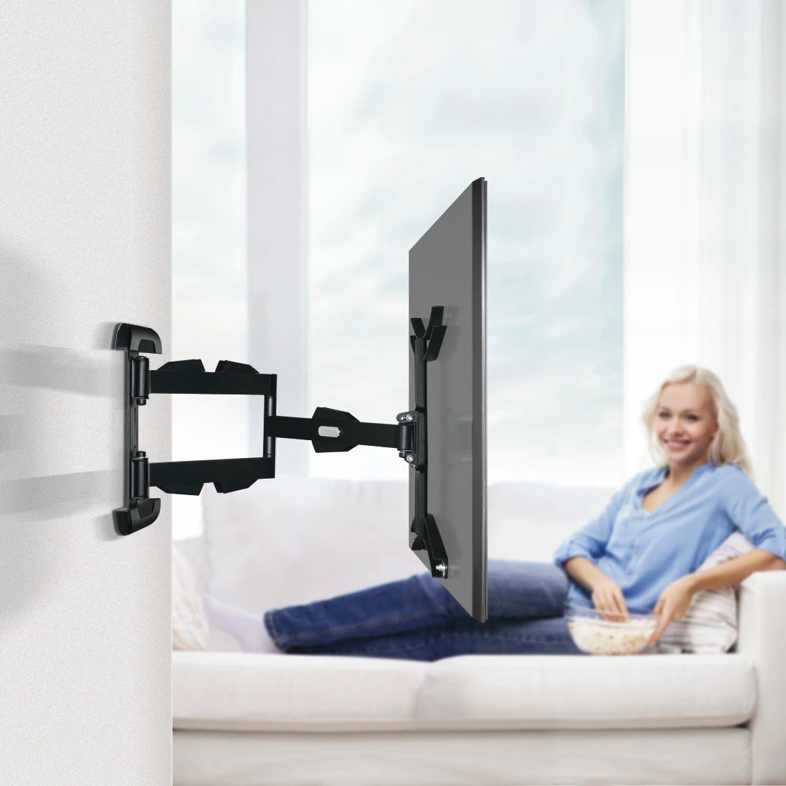 Настінне кріплення, яке забезпечує високу мобільність телевізора, щоб його було добре видно майже з будь-якої точки кімнати. Двостороннє кріплення fullmotion є ідеальним рішенням, коли ви також використовуєте телевізор для презентацій, ігор чи шоу.