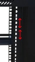 Вертикальні напрямні мають правильне маркування висоти, яка становить 15U (від англійської одиниці вимірювання), а загальна висота шафи становить 77,5 см.