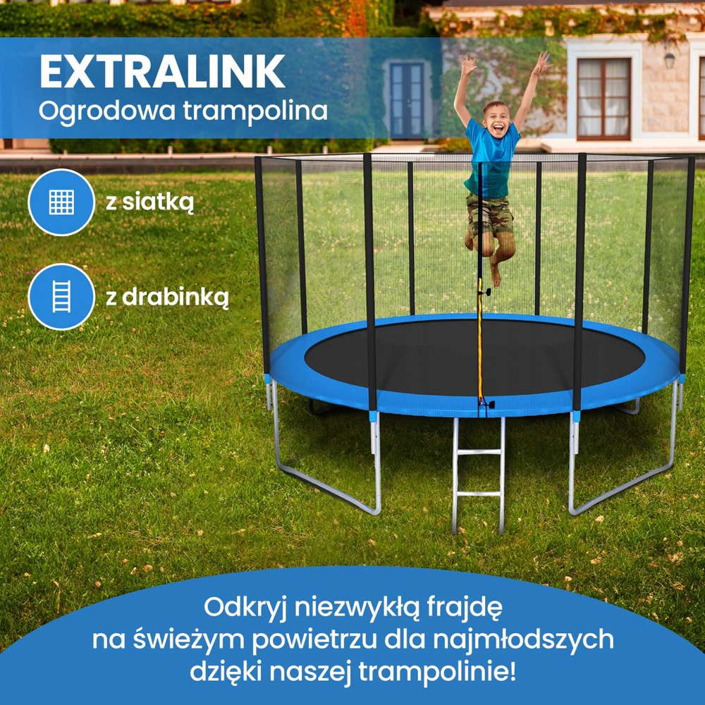 Відкрийте для себе надзвичайну розвагу на свіжому повітрі з батутом Extralink 12FT. Ця міцна конструкція гарантує незабутні моменти радості та активності для ваших дітей. Завдяки цьому стрибки стають захоплюючим досвідом, ідеальним для дітей, які шукають захоплюючих вражень. Він не тільки забезпечить безпечні розваги, але і порадує своїм стильним дизайном, ставши ідеальним доповненням до Вашого саду. Відправте своїх дітей у незабутню пригоду, повну сміху та безпеки!